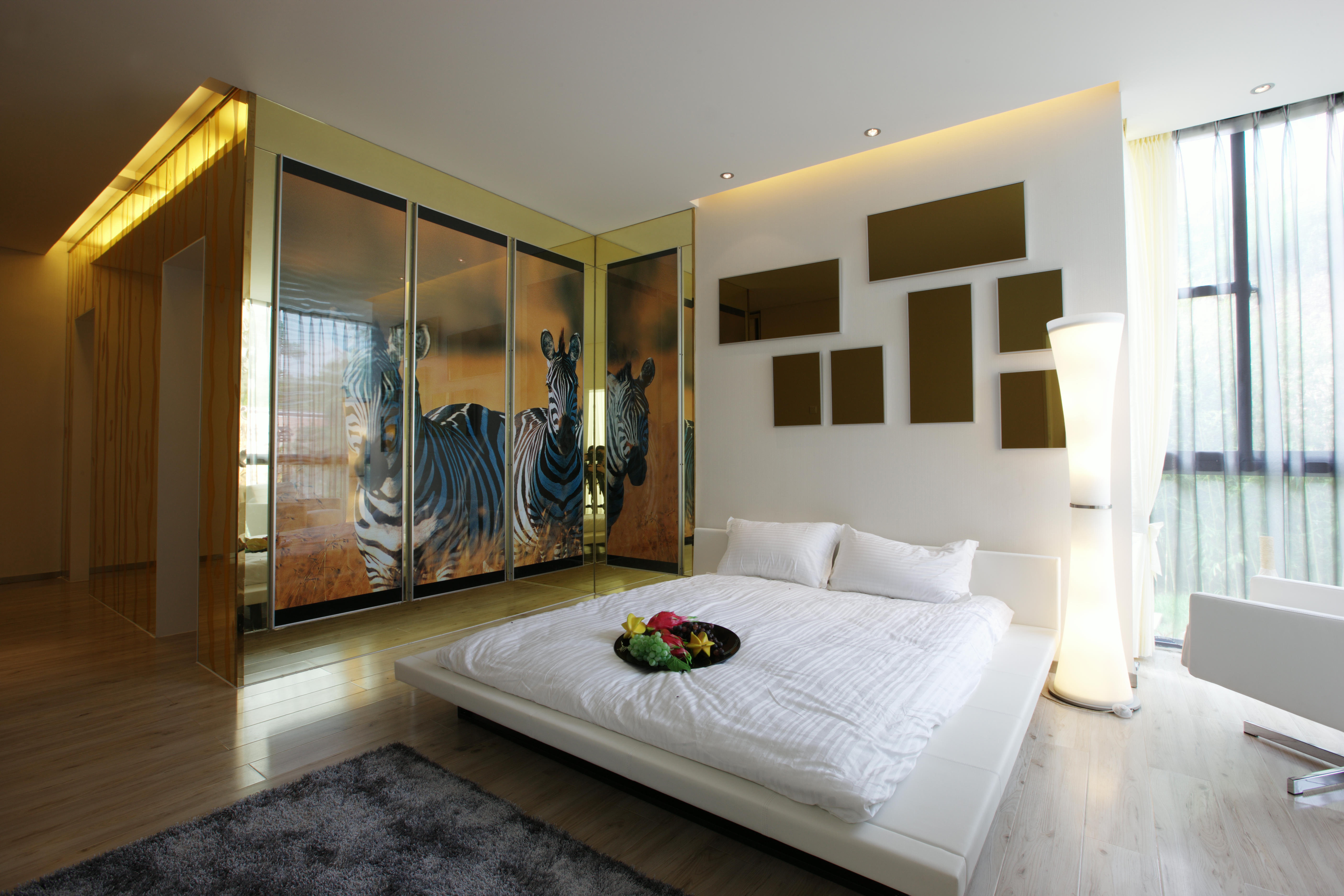 臥室以灰色系作為主基調,除卻簡單的家具擺設,無過多的裝飾物,為主人打造一個簡潔舒適的休息空間。勞累了一天,回到家中,呆在溫馨且浪漫的臥室里,瞬間心情放松下來了。裝飾幾乎是后現代設計的一個最為典型的特征,這是后現代主義反對現代主義、國際風格的最有力的武器,主張采用裝飾手法來達到視覺上的豐富,提倡滿足心理需求而不僅僅是單調的功能主義中心。