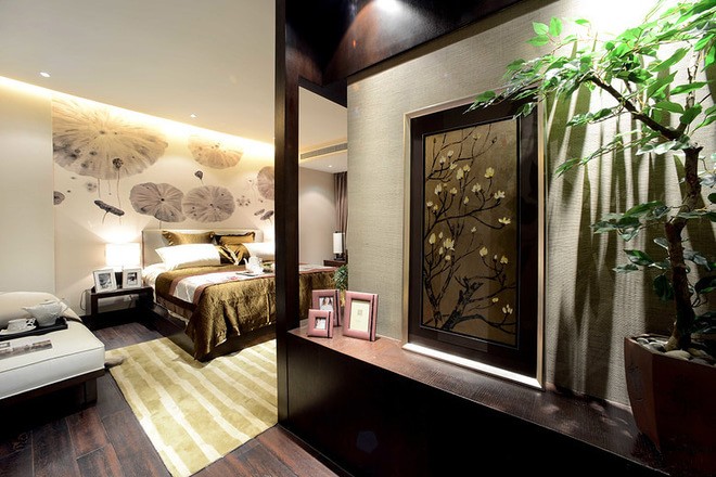 ▲現(xiàn)代中式風。同樣是中式,現(xiàn)代中式不同于傳統(tǒng)中式,沒有傳統(tǒng)的死板和厚重,多了一絲現(xiàn)代氣息,顏色上同樣是偏向深色,但是可以用現(xiàn)代元素進行點綴,整體風格受中年人追捧,后期家具也是造價不菲