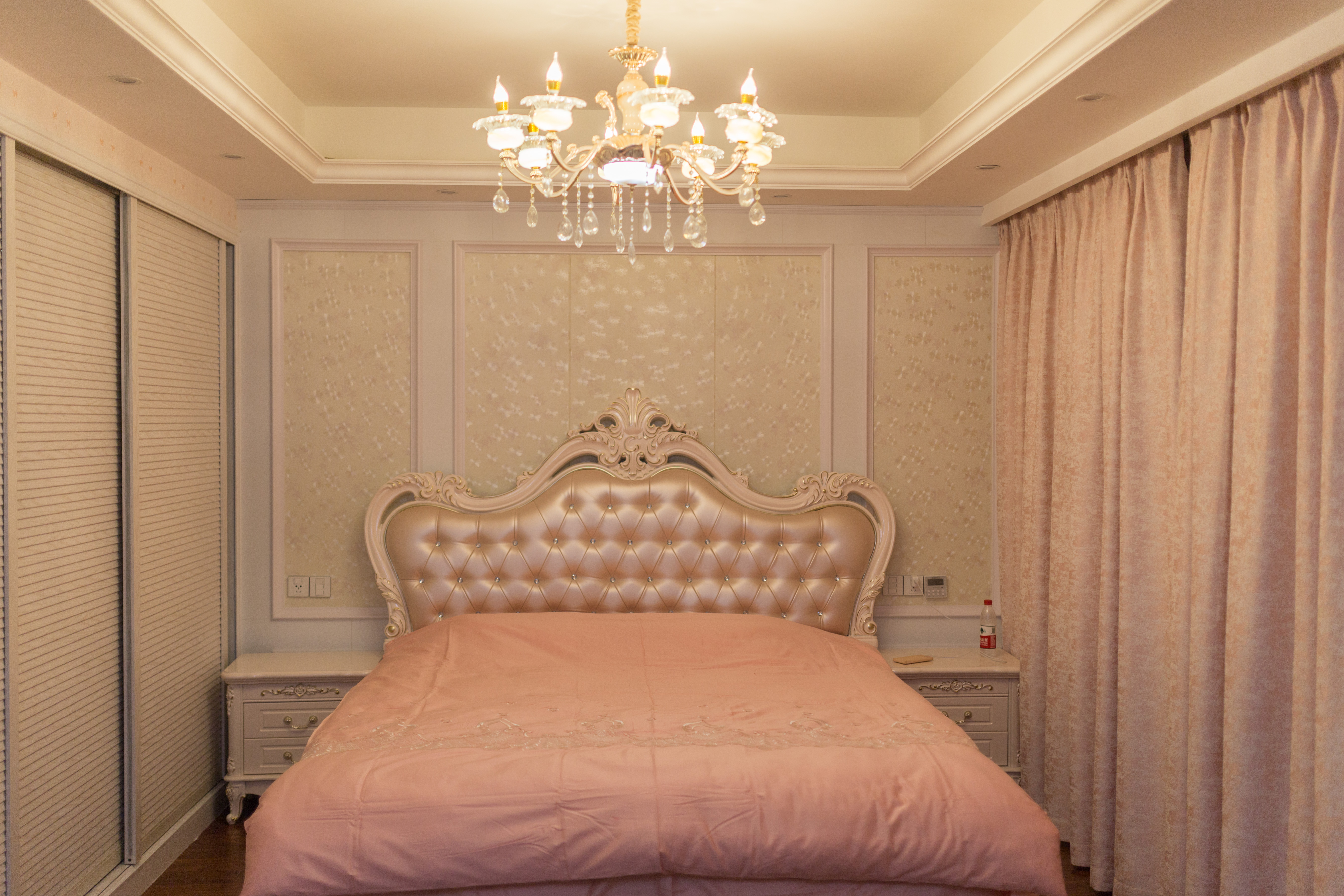 盡量不要使用裝飾性太強的懸頂式吊燈,它不但會使你的房間產生許多陰暗的角落,也會在頭頂形成太多的光線,躺在床上向上看時燈光還會刺眼。最好采用向上打光的燈,既可以是房頂顯得高遠,又可以使光線柔和,不直射眼睛。除主要燈源外,還應設臺燈或壁燈,以備起夜或睡前看書用。另外,角落里設計幾盞射燈,以便用不同顏色的燈炮來調節房間的色調。