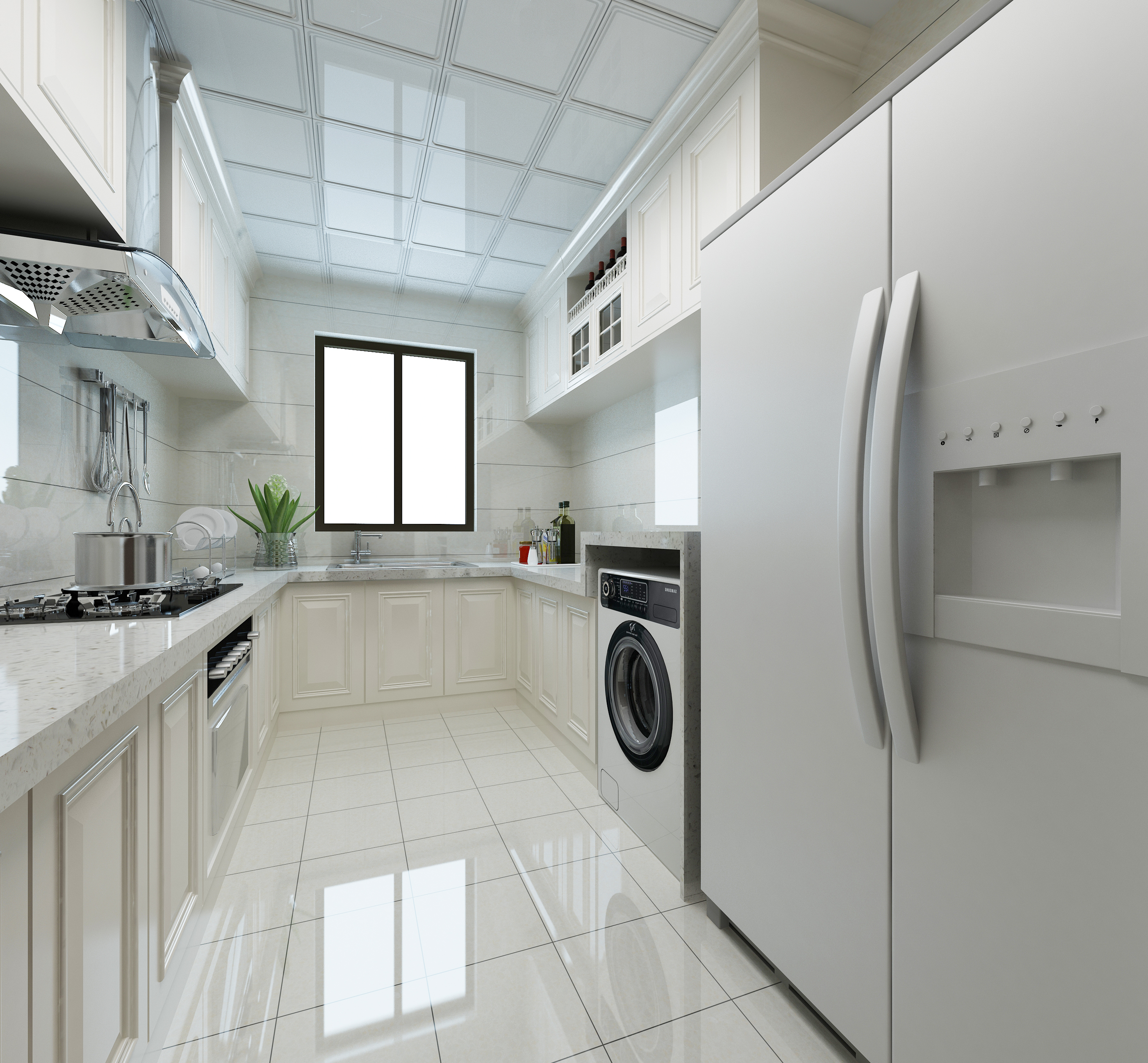 4、看看空間是否足夠,這個空間是否有冰箱的空間,通常冰箱在廚房餐廳,根據自己的空間大小,如果餐廳的空間不大,你就放一個從右到左的門,連用餐的位置都沒有。