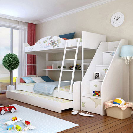 木質的來說省空間好收納,雙人床相比單人床更節省空間,很重要的,因為購買單人床還需要另外配書桌和柜子,會占用較多的空間。而雙層床能很好的節省空間,他們會在床的下方和樓梯處設計儲物柜,從而增加大量的存儲空間,為小戶型節省了更多的空間。